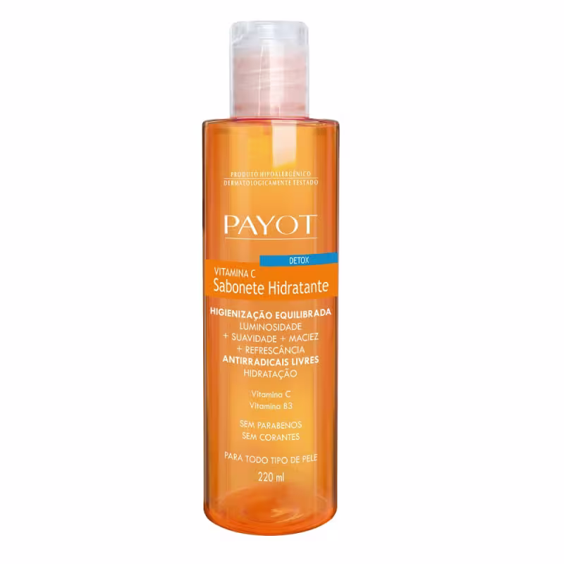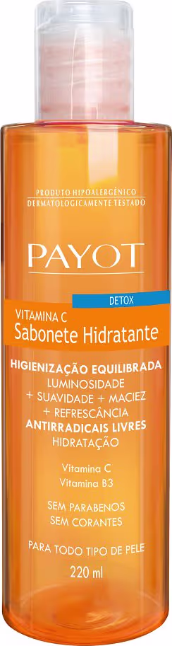 Payot Detox Vitamina C - Sabonete Líquido 220ml: limpa de forma equilibrada. Com espuma cremosa e refrescante, devolve a maciez, a suavidade e a luminosidade naturais da pele. Para todos os tipos de pele.