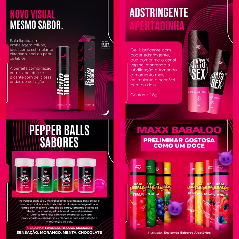 Kit com 10 produtos íntimos. Pepper Blend Sedenta Molhada Deslizante é ideal para uso pessoal ou uma ótima oportunidade para quem tem sede de prazer.