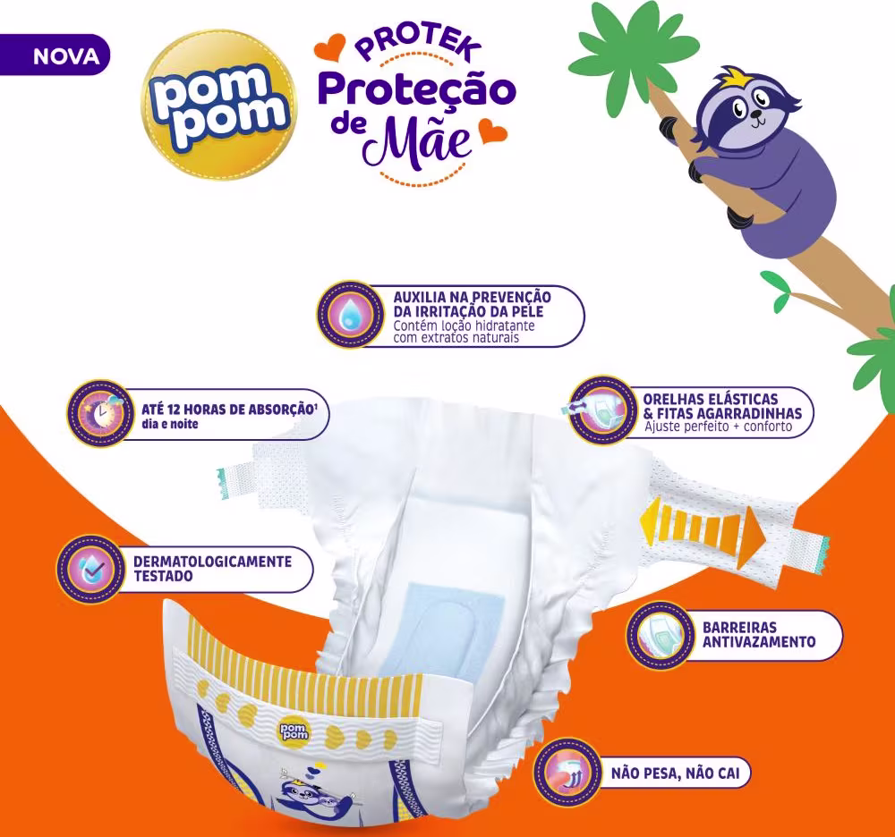 Kit Pom Pom Derma Protek Mega P. Proporciona até 12h de proteção, deixando seu bebê sequinho e confortável por muito tempo. Melhores fraldas Pom Pom na BLZ. Ver mais ❯