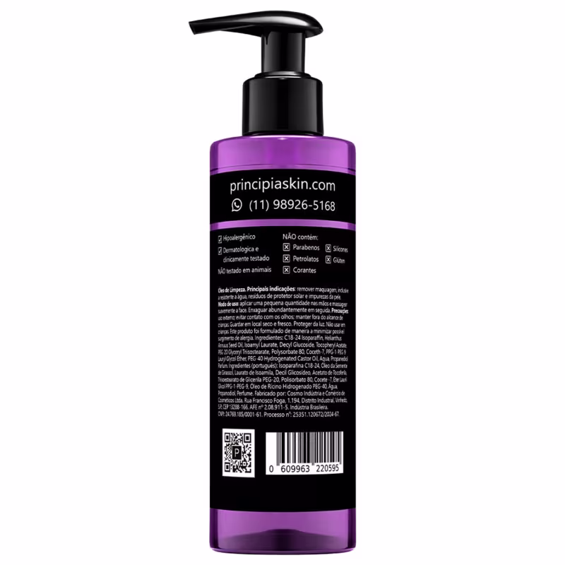 Principia OL-01 - Óleo de Limpeza Demaquilante 200ml: oferece uma limpeza profunda e delicada, removendo com eficiência maquiagem resistente à água, resíduos de protetor solar e sujidades acumuladas. A fórmula exclusiva conta com 30% de Óleo de Girassol, um composto vegetal rico em ácidos graxos essenciais Ômega-6 e Ômega-9, que atua como emoliente, promovendo hidratação intensa e prolongada.