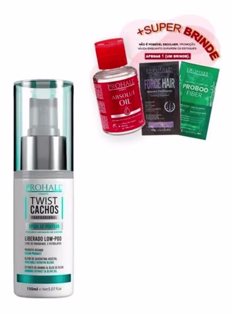 Não sei o CEPKit com shampoo e máscara capilar para cabelos cacheados. Prohall Cosmetic Twist Cachos Shampoo & Mask garante fios limpos, macios e condicionados.