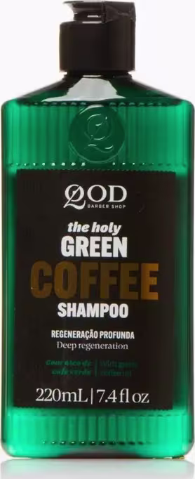 QOD Barber Shop The Holy Green Coffee - Shampoo 200ml: restaura, limpa e trata não só seu cabelo mas também a pele por baixo dele. Tirando os aspectos opacos, controlando algumas causas de caspa dando vida e brilho para os fios masculinos.