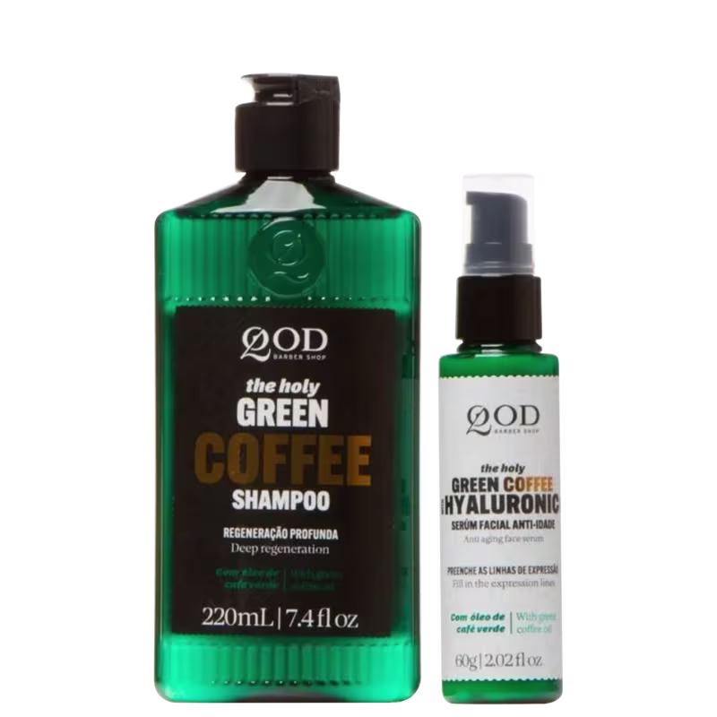 O Kit QOD Barber Shop The Holy Green Coffee é a solução ideal para o homens que tem pele oleosa e sofrem com espinhas, ou querem melhorar o aspecto do seu rosto diminuindo as rugas e linhas de expressão.