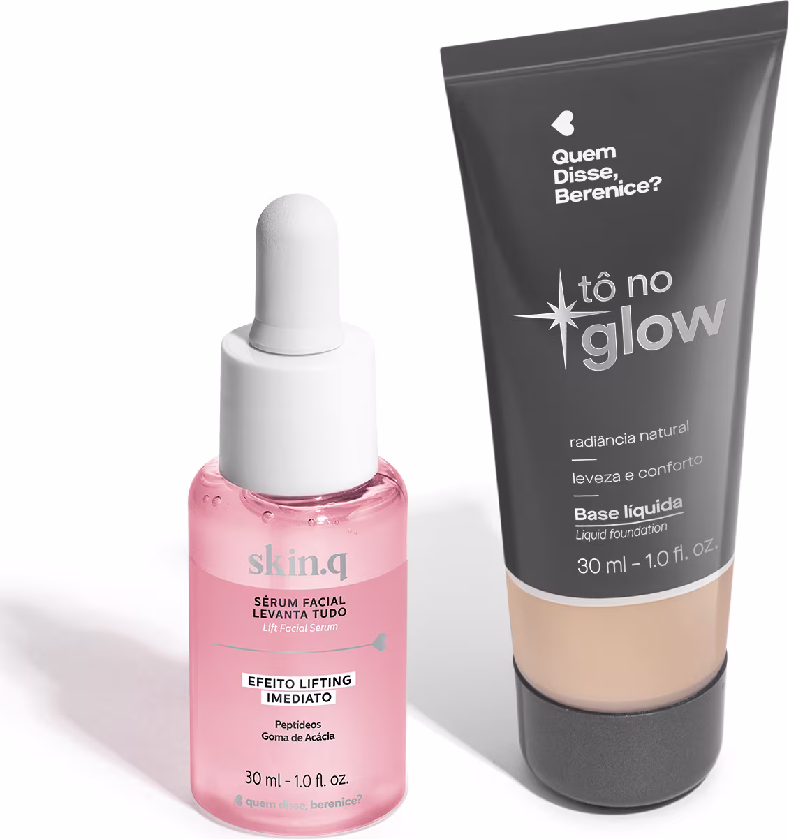 Kit com base líquida e sérum facial para todos os tipos de pele. Quem Disse, Berenice? Levanta Tudo + Tô no Glow: você com um glow lindo e efeito lifting.