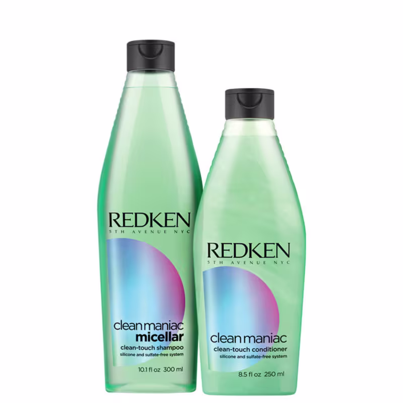 Kit Redken Clean Maniac Duo consegue remover até resíduos acumulados nos fios sem agredir ou precisar abrir as cutículas capilares. Ele ainda tem uma fórmula tecnológica que prolonga a sensação de cabelo limpo e fresco.