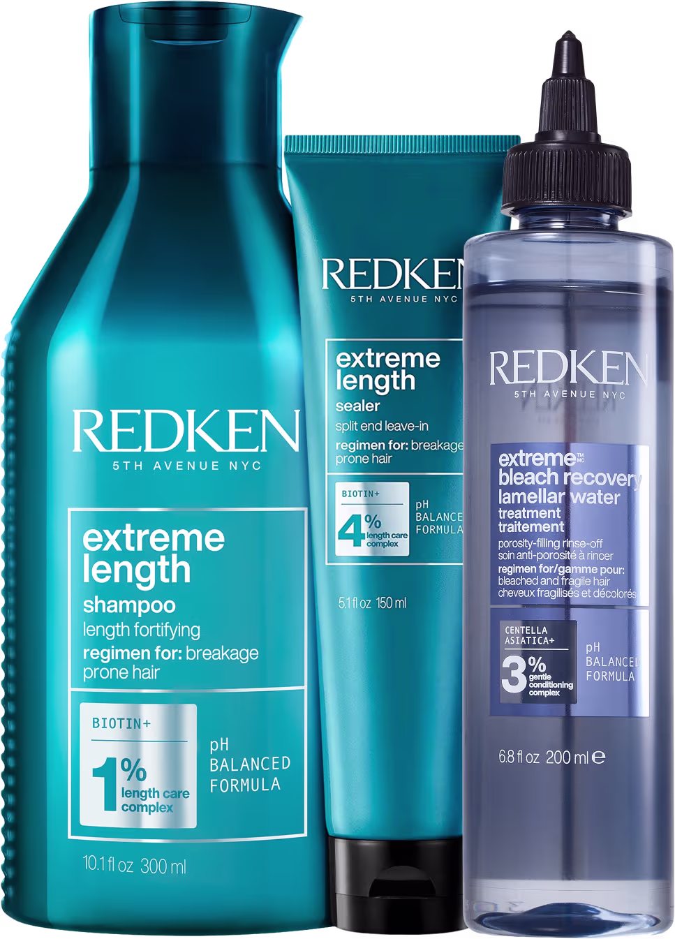 O Kit Redken Extreme Loiros & Danificados Cabelos Finos traz um shampoo, que nutre e combate a rigidez dos fios enquanto remove impurezas de forma gentil; um fluido de tratamento, que condiciona e restaura a maciez e o brilho de cabelos descoloridos ou danificados; e um leave-in, que condiciona e trata profundamente, aumentando a resistência dos fios.