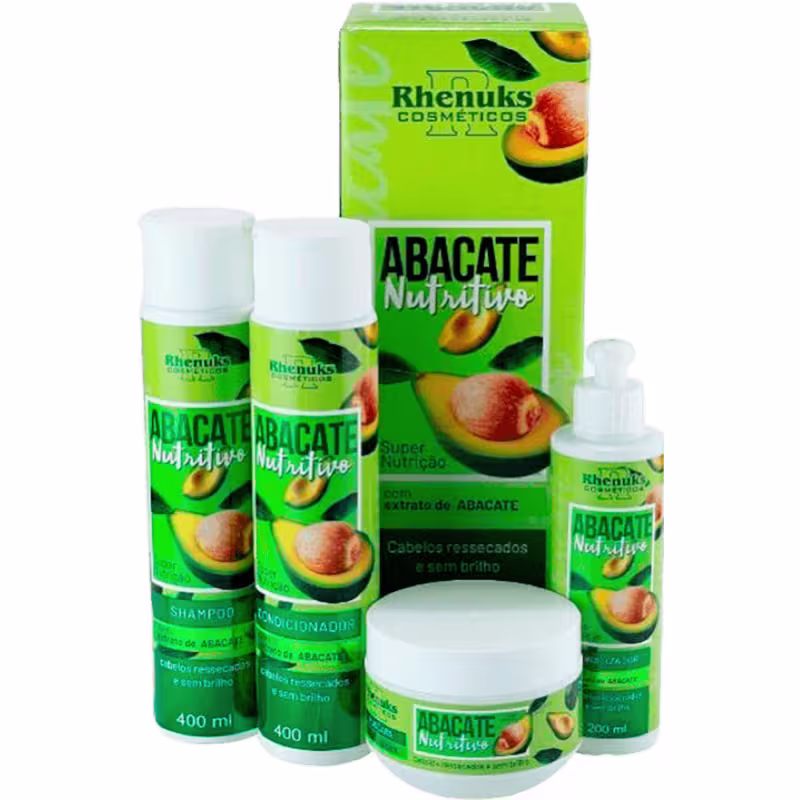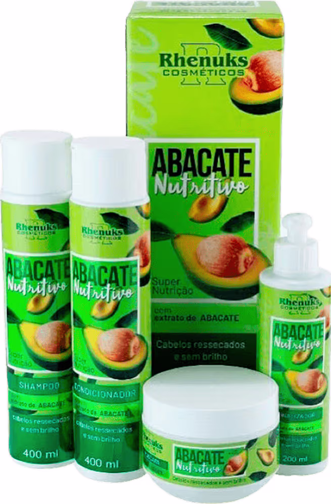 Kit de tratamento para cabelos ressecados e sem brilho. Kit Rhenuks Abacate Nutritivo, reaviva os fios danificados, devolvendo a saúde.