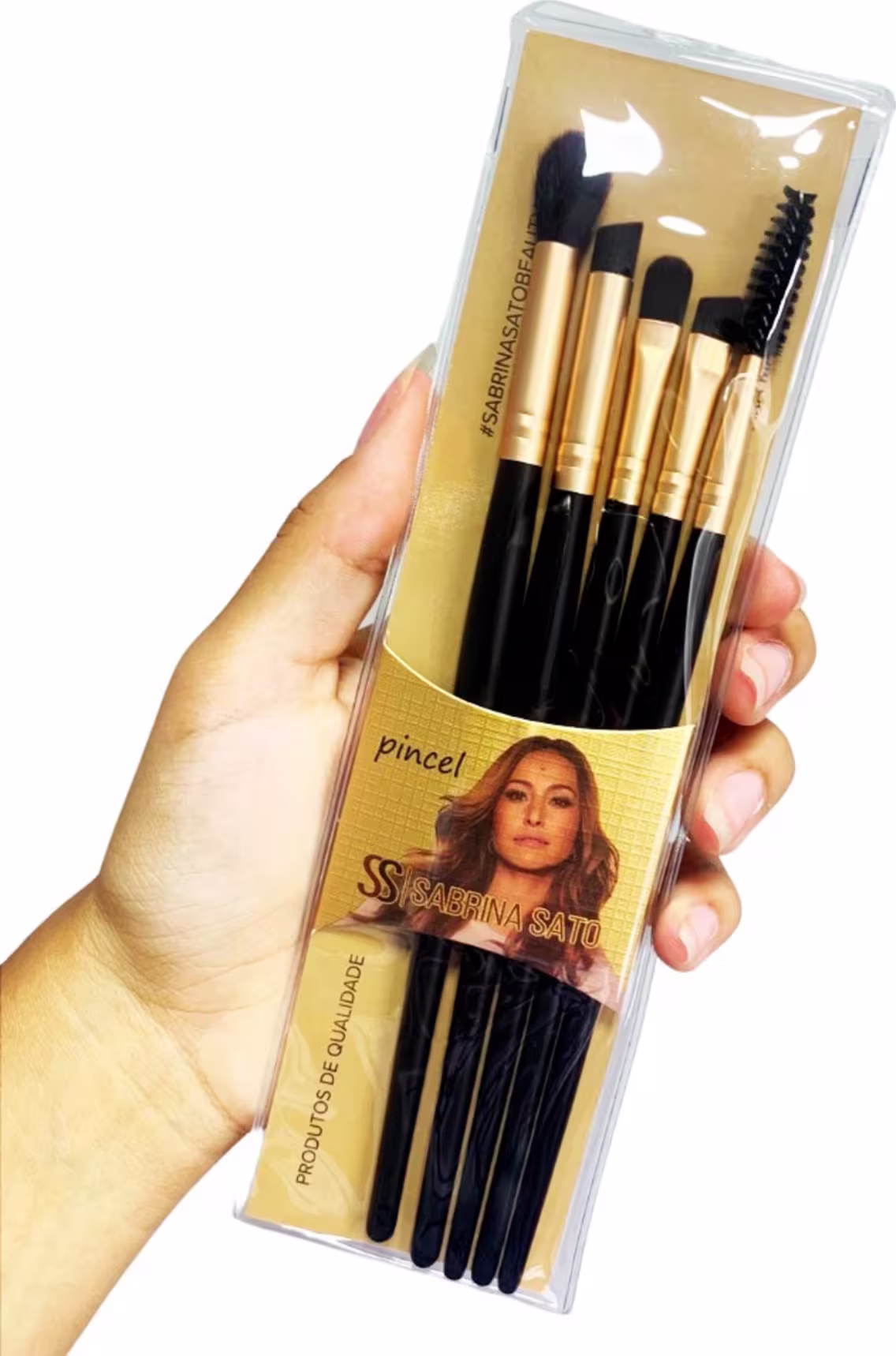 O Kit Sabrina Sato vem com 5 pincéis para olhos, para você aplicar as sombras, esfumar, criar delineados e deixar os seus olhos marcados ou leves, dependendo da produção que você preferir.