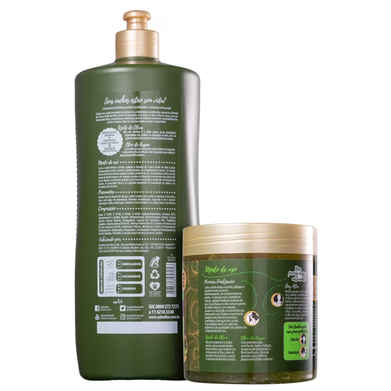 O Kit Salon Line S.O.S Cachos Azeite de Oliva Definição Total te ajuda a conquistar um cabelo ainda mais brilhante, macio e com ondas e cachos definidos com muita facilidade no dia a dia.