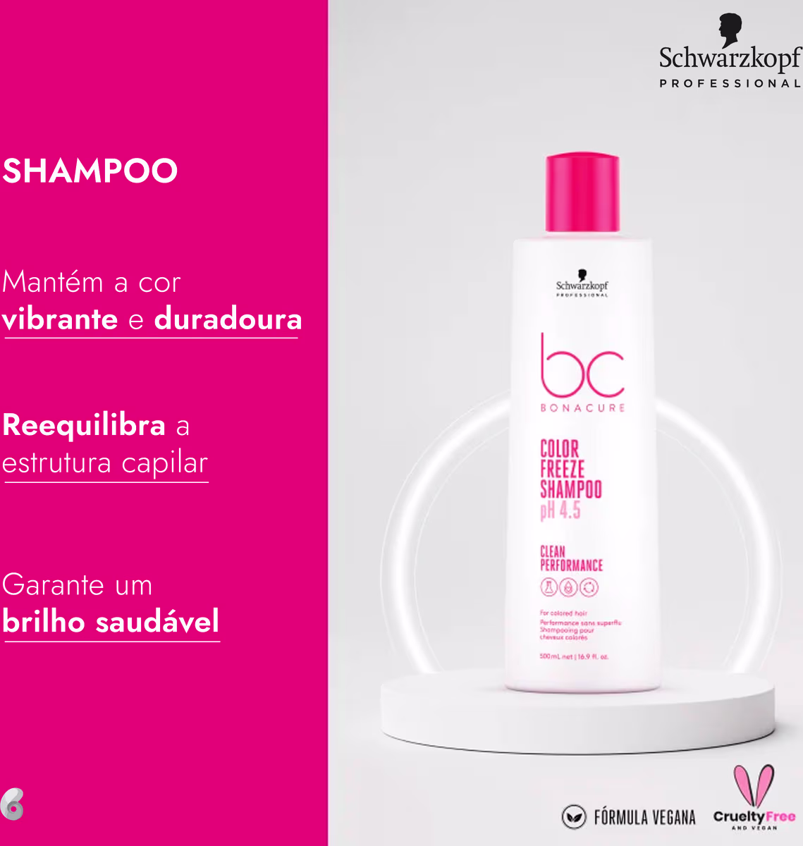 O Kit Schwarzkopf Professional BC Bonacure Clean Performance Color Freeze Profissional apresenta uma fórmula clean beauty inovadora, 100% vegan, sem Sulfatos, Silicones, Óleos Minerais, Microplásticos e Corantes Artificiais, com um elevado nível de biodegradabilidade. Sua tecnologia avançada conta com Vegan Care Complex, além de ter embalagens sustentáveis em produtos de rendimento elevado.
