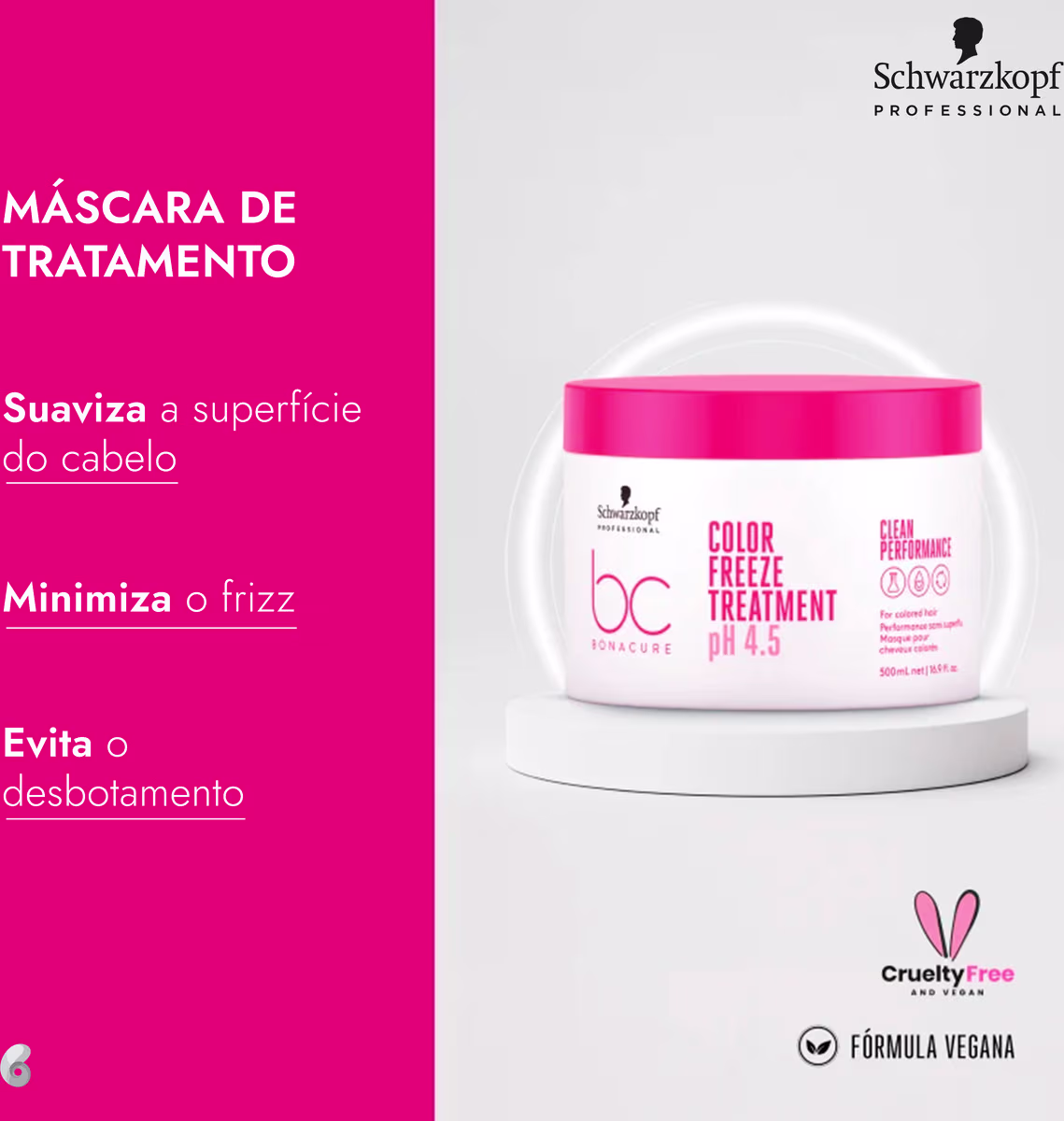 Não sei o CEPKit com shampoo, máscara e leave-in para cabelos coloridos em tamanho profissional. Schwarzkopf Professional BC Bonacure Clean Performance Color Freeze Profissional tem pH 4.5 que reequilibra a estrutura do cabelo para um nível de pH ideal, além de proteger a cor dos fios, evitando o desbotamento.