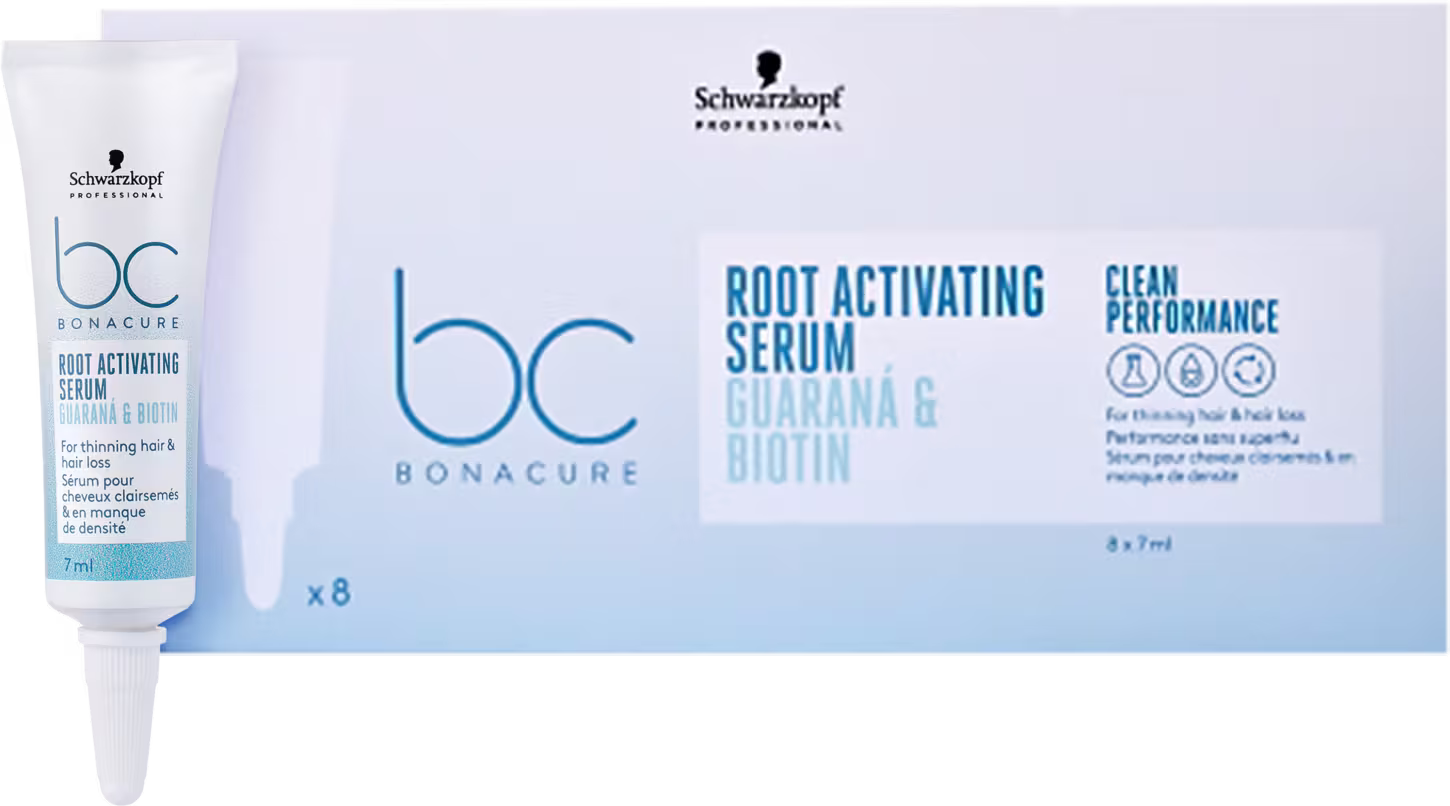 Não sei o CEPKit com 8 séruns para cabelos com queda. Schwarzkopf Professional Bonacure Root Activating fortalece os fios, promovendo vitalidade e equilíbrio capilar.