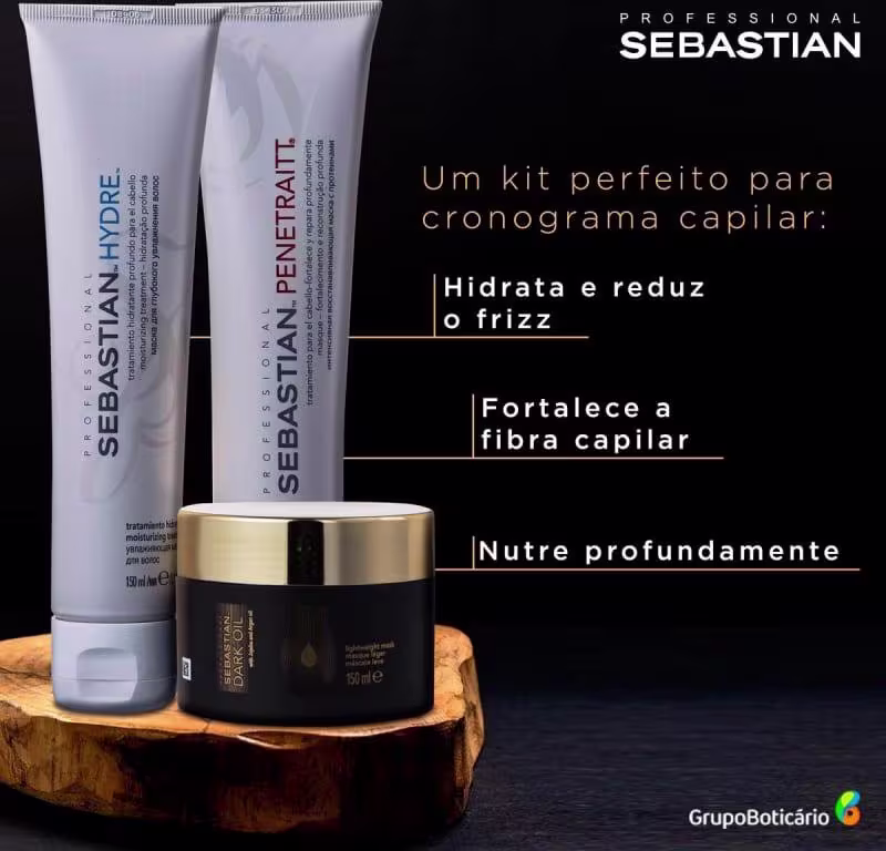 Kit Sebastian Professional Dark Oil + Hydre + Penetraitt Mask Tratamento para cronograma capilar. Melhores Kits da Sebastian na BLZ. Ver mais ❯