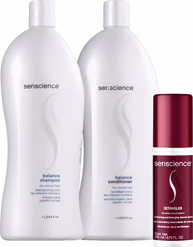 O Kit Senscience Balance Detangler Salon Trio deixa os fios saudáveis e macios, com maleabilidade e leveza.