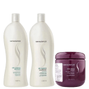 O Kit Senscience Balance + Inner Restore Intensif limpa suavemente, desembaraça e condiciona, deixando o cabelo revitalizado, muito mais maleável, com brilho e maciez.
