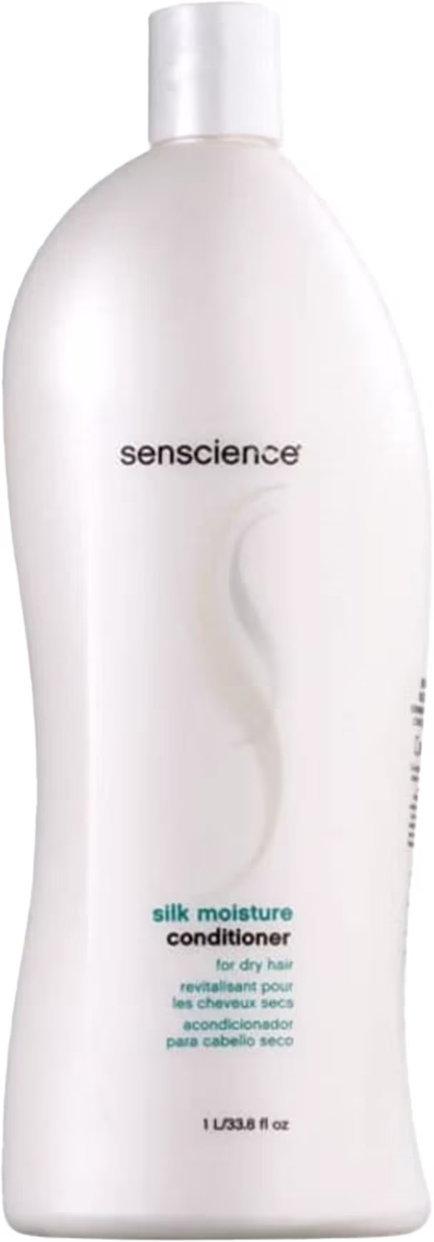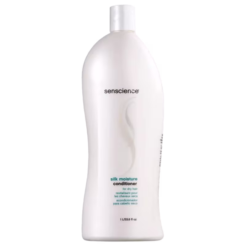 Senscience Silk Moisture Conditioner - Condicionador 1L: condicionador de litro para cabelos secos ou danificados. Desembaraça e condiciona os fios, além de hidratar e restaurar a fibra capilar.