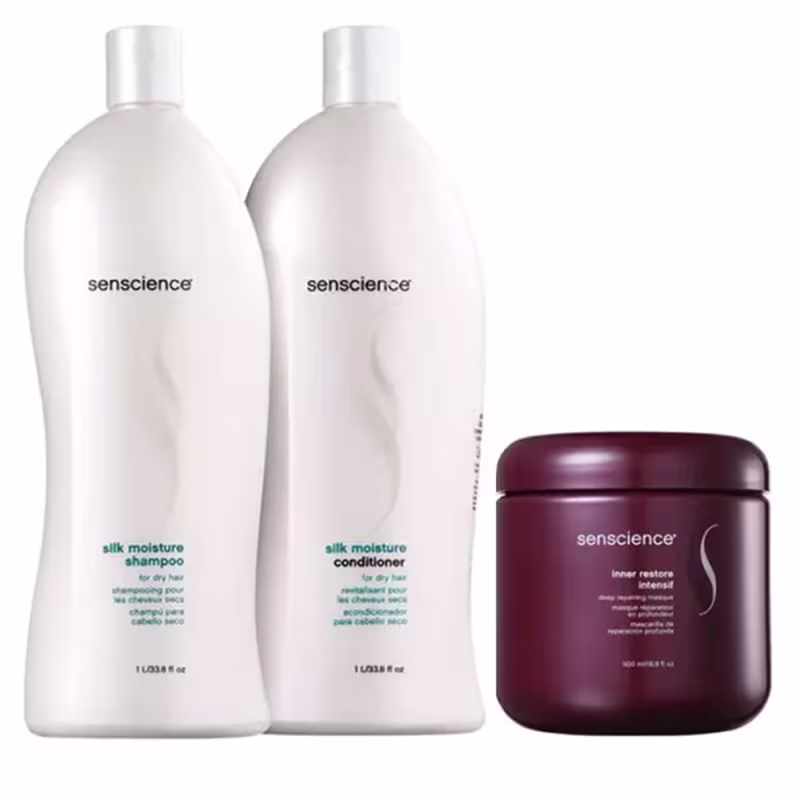 O Kit Senscience Silk Moisture Restore Intensif Salon Care possui uma fórmula rica, que penetra nos fios e recupera os danos causados por diversos motivos, como por exemplo, processos químicos, fatores ambientais e calor de ferramentas térmicas. Seu cabelo fica limpo, condicionado, desembaraçado, com um toque sedoso e restaurado da raiz às pontas.