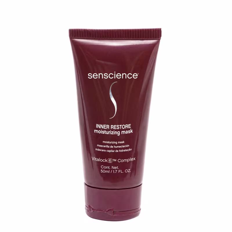 Senscience Inner Restore Intensif Moisturizing - Máscara Capilar 50ml: apresenta fórmula enriquecida com Blend de Silicones, com agentes hidratantes e nutritivos, que sela e repara as cutículas danificadas e proporciona hidratação, nutrição e maciez duradouras, além do aspecto saudável.