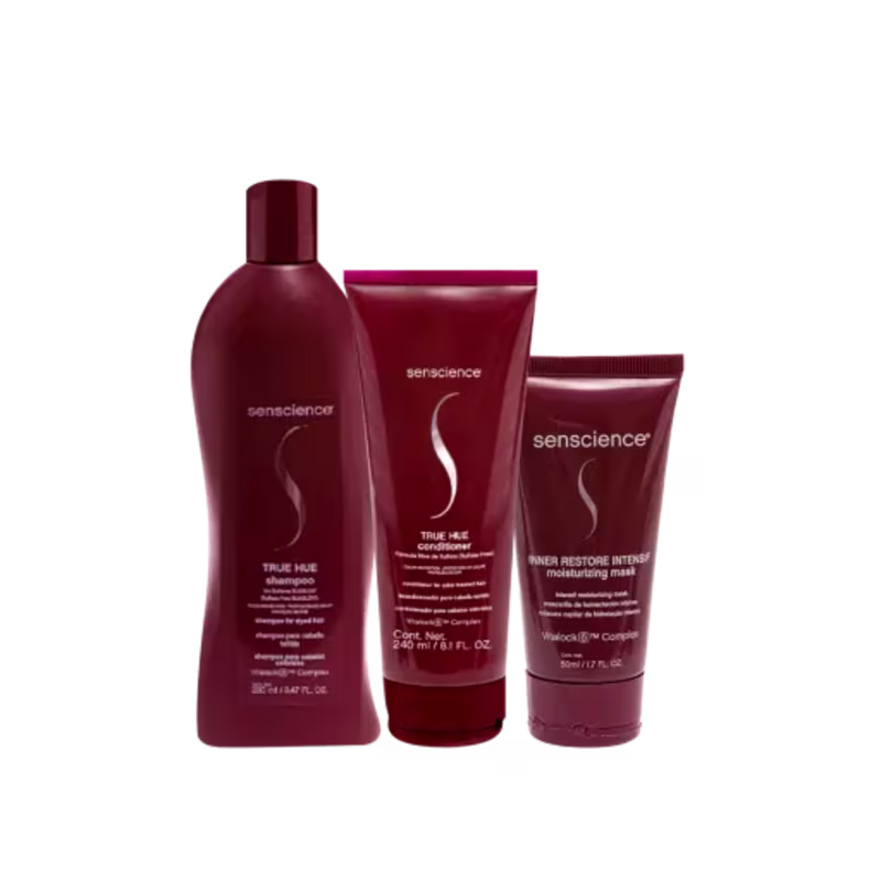 O Kit Senscience True Hue Intensif Reparação Loiros e Tintos Trio conta com produtos livres de Sulfato, para limpeza e hidratação dos fios, evitando o desbotamento da cor e deixando o cabelo macio, brilhante e fácil de pentear.