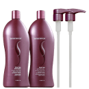Kit de tratamento para cabelos coloridos, em tamanho profissional. Senscience True Hue Salon + Válvulas Pump limpa, condiciona, desembaraça e preserva a tonalidade e o brilho da cor por muito mais tempo.