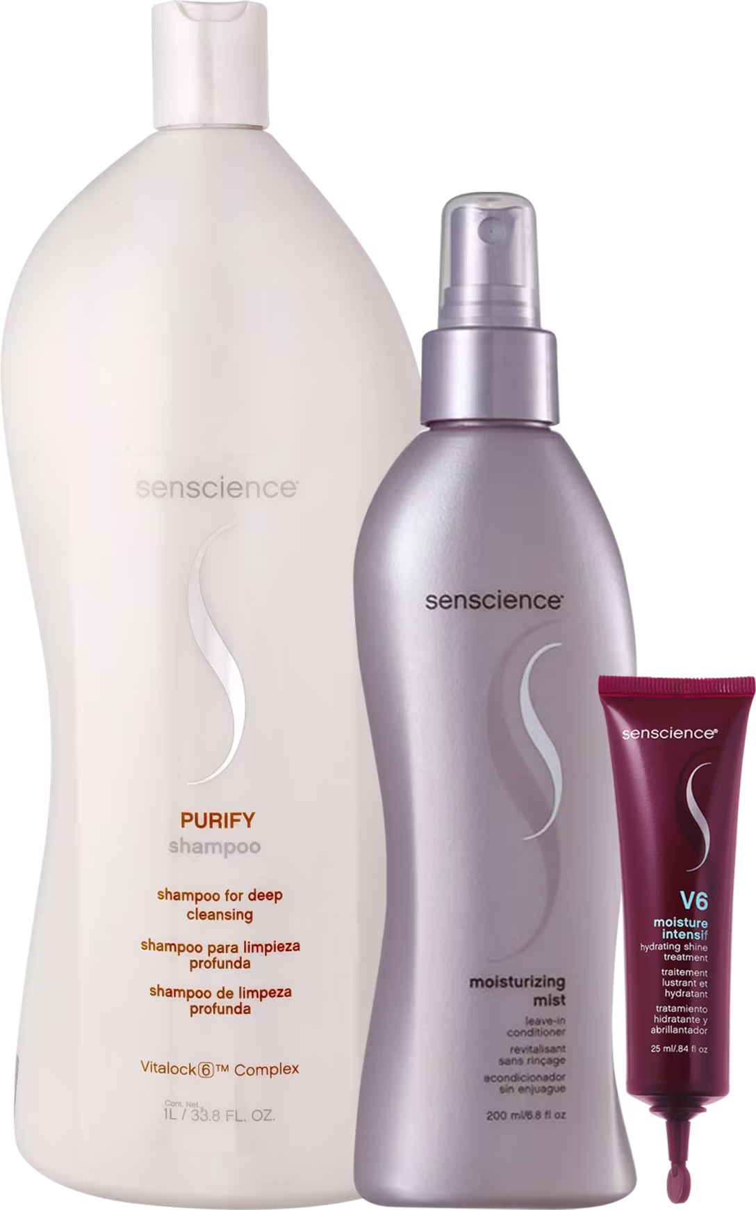 Kit de tratamento para cabelos secos e ressecados. Kit Senscience V6 Moisture Intensif Professional Treatments oferece hidratação profunda, maciez e movimento. Devolve a umectação para o cabelo danificado e frágil.