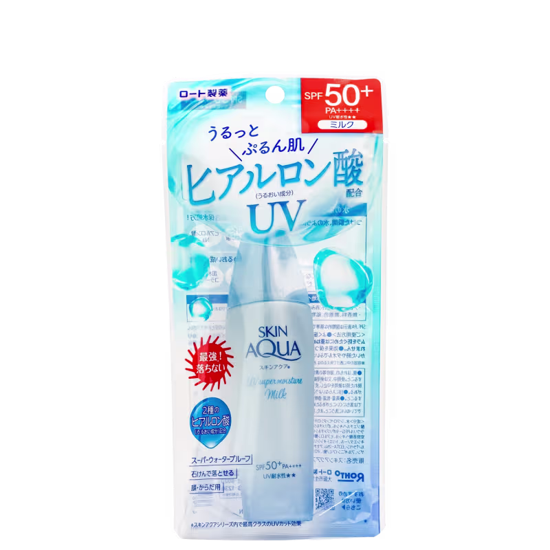 O Kit Skin Aqua Super Moisture Milk FPS 50 Double oferece alta proteção para rosto e corpo com textura leve, aquosa e de rápida absorção. Hidrata profundamente sem deixar a pele oleosa ou esbranquiçada, garantindo conforto e acabamento natural. Sua fórmula japonesa é resistente à água e ao suor, podendo ser usada também como primer.