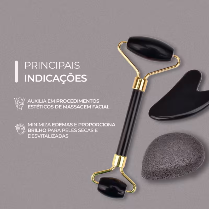 Não sei o CEPKit com rolo massageador e guasha. Smart Gr Obsidiana Negra promove purificação, revitalização e proteção à pele.
