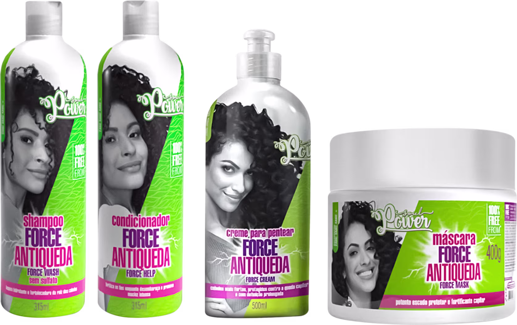 Kit com shampoo, condicionador, creme para pentear e máscara. Soul Power Force Antiqueda Wash Help Cream Mask hidrata e mantém os fios mais fortes e macios.