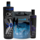 Kit com pó descolorante, loção reveladora 30 volumes e máscara matizadora. Soupleliss Professional Blue Ox 30 Vol. Mask White descolore uniformemente e além de nutrir os fios.