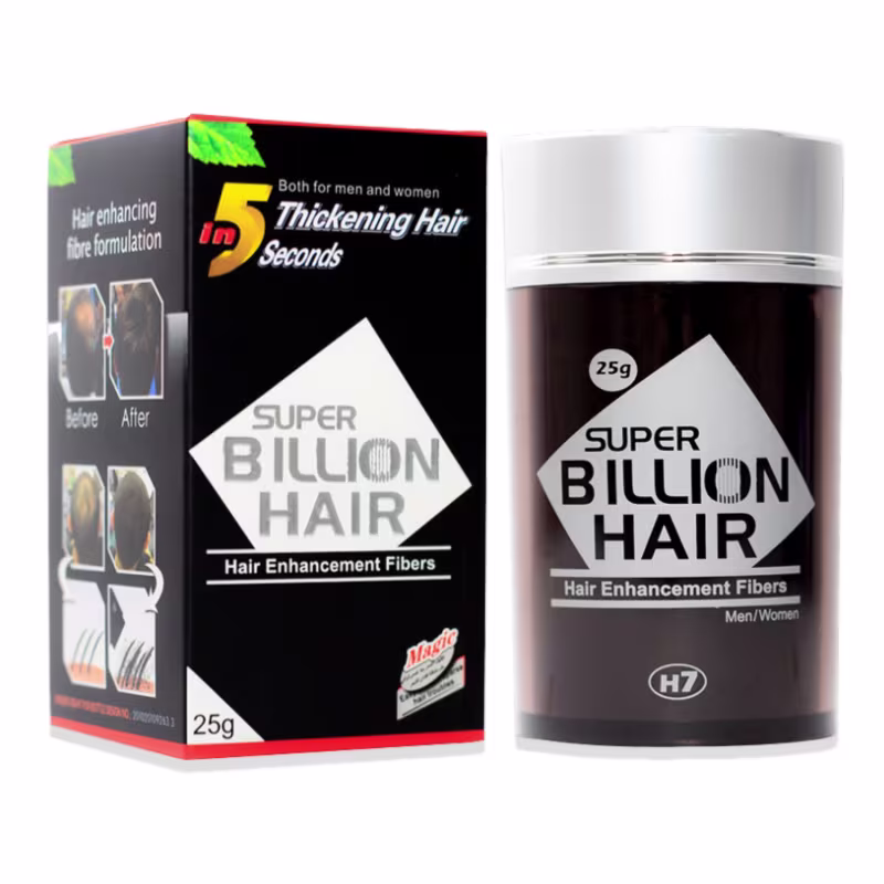 Super Billion Hair Fibras de Queratina em Pó Castanho Claro - Finalizador Capilar 25g: é a solução ideal para quem deseja um cabelo com aparência natural e mais volume. Feito com queratina, ele se fixa eletrostaticamente aos fios, promovendo um resultado imediato em áreas ralas. Pode ser utilizado tanto por homens quanto por mulheres, é seguro, fácil de remover, e não causa manchas ou efeitos colaterais.