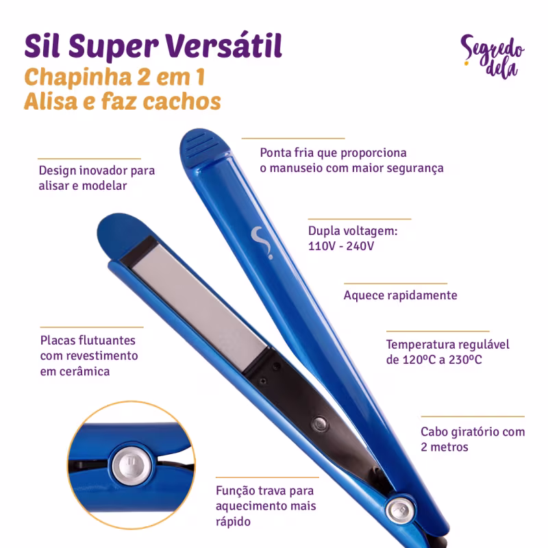 Segredo Dela Sil Super Versátil - Chapinha 2 em 1: com