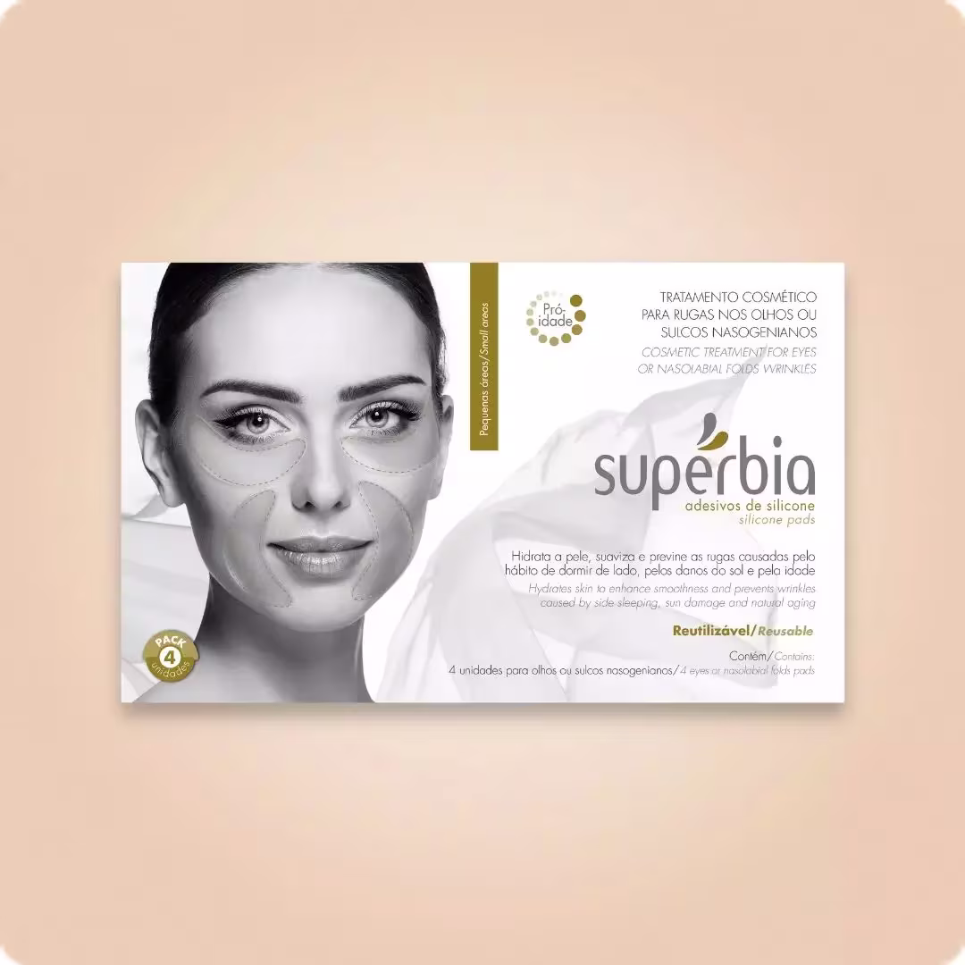 Supérbia Adesivos de Silicone Pequenas Áreas - Tratamento Redutor de Linhas (4 Unidades): traz formatos que se adaptam perfeitamente ao redor dos olhos e da boca, regiões que mais apresentam sinais, e pode ser reutilizado. Sua ação tecnológica mantém a pele mais firme e hidratada por mais tempo, para a redução dos vincos e garantir uma aparência mais jovem e descansada.