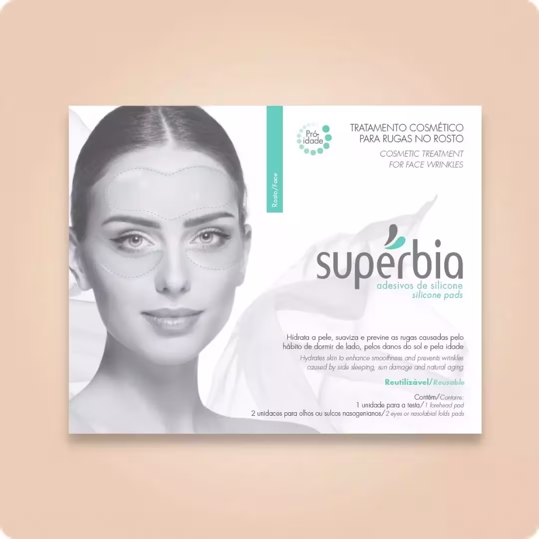 Supérbia Adesivos de Silicone Rosto - Tratamento Redutor de Linhas (3 Unidades): traz um formato para ser colocado na testa e outro para abaixo dos olhos. Reutilizáveis, sua textura maleável é confortável durante o uso. Sua ação potencialmente hidratante reduz as rugas causadas pelo hábito de dormir de lado, exposição ao sol ou pela idade.