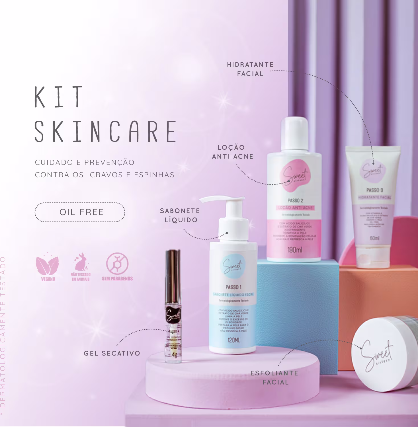 O Kit Sweet Sixteen Skincare reúne todos os produtos necessários para que você tenha uma pele saudável, bonita, sedosa e longe dos cravos e espinhas.