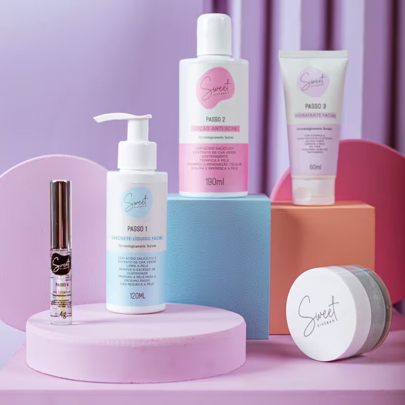 Kit completo para cuidado com a pele. Sweet Sixteen Skincare garante uma rotina de skincare completa e com resultados eficazes.