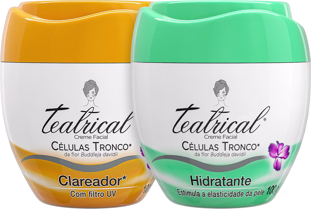 Kit Teatrical Células Tronco Facial Clareador & Hidratante, melhora a textura e uniformiza o tom da pele. Melhores Kits de Cuidados para face Teatrical na BLZ Ver mais ❯