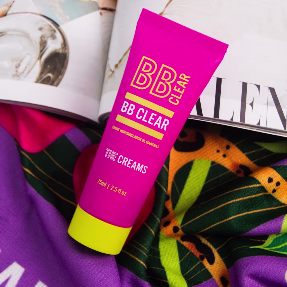 The Creams BB Clear - Uniformizador Corporal 75ml: tem fórmula com ativos que atuam nas diversas etapas de formação da melanina, controlando sua produção e recuperando gradativamente a tonalidade natural da pele. É enriquecido com Ácido Hialurônico e Prebiótico, que promovem hidratação e proteção da pele.