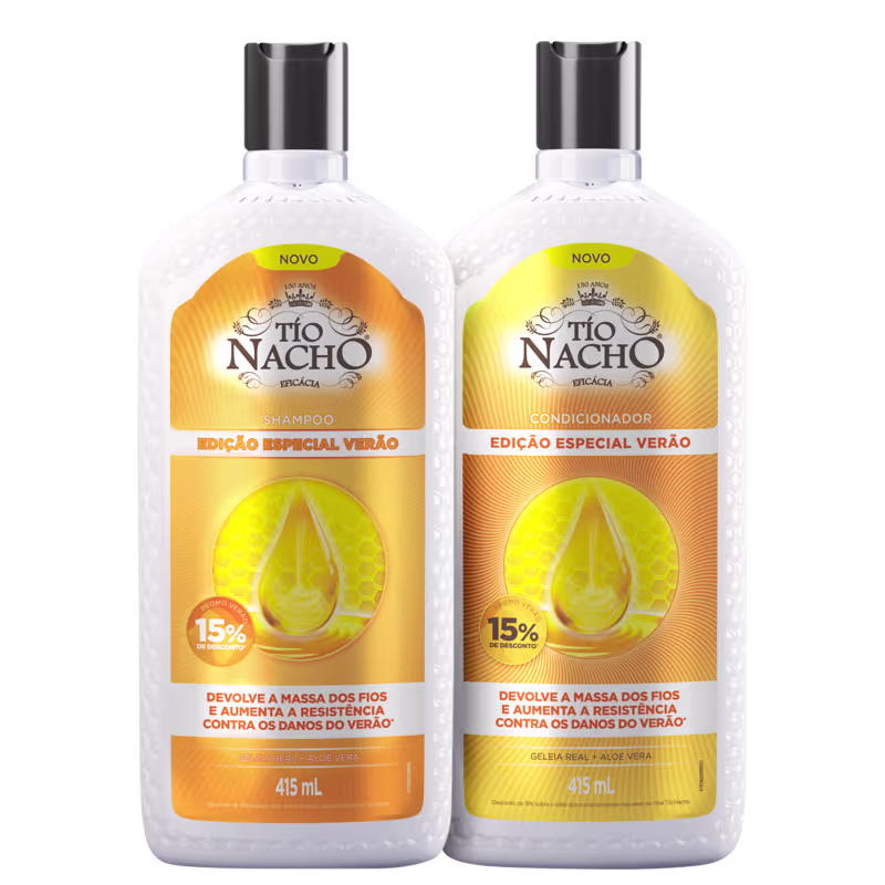 Kit Tío Nacho Especial Verão revitaliza os fios, proporciona mais brilho, força e auxilia no combate ao ressecamento. Com ele, seu cabelo ganha maciez e fica recuperado das agressões do verão.