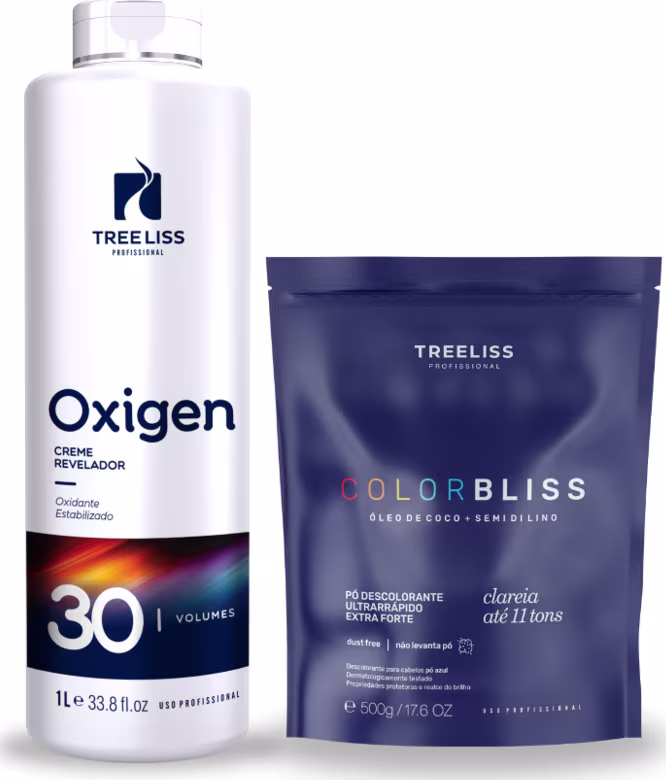 O Kit TreeLiss Profissional Color Bliss + Oxigen 30 Volumes é composto por produtos exclusivos, excelentes para promover um tratamento capilar intensivo. Ao utilizá-lo, será possível clarear os cabelos de forma segura, sem comprometer a fibra capilar. Experimente!
