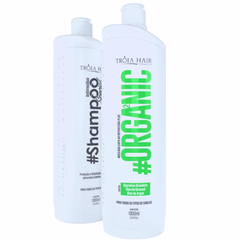 Kit com shampoo antirresíduos e ativo para escova progressiva. Tróia Hair Cosmetics Organic Selagem Inteligente indicado para todos os tipos de cabelos, sem ardência, cheiro ruim ou odor.