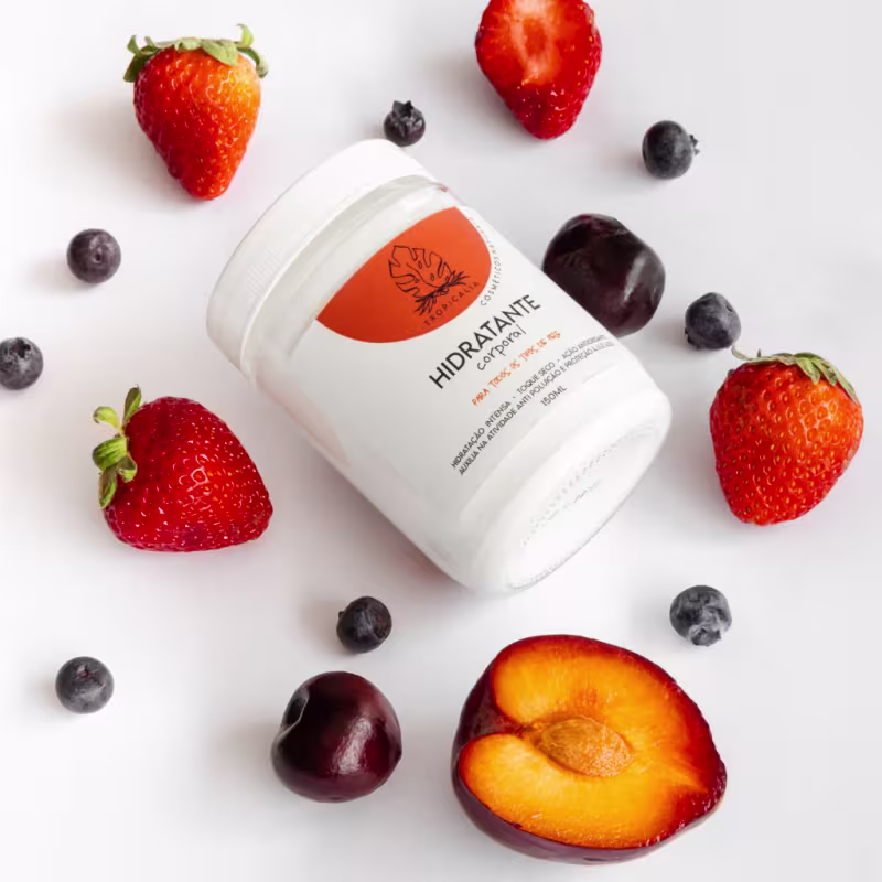 Tropicália Cosméticos Naturais Todos os Tipos de Pele - Hidratante Corporal 150ml: possui ação antioxidante, que combate os radicais livres, prevenindo rugas e linhas de expressão. Além disso, também deixa a pele iluminada, com o tom uniformizado. Também oferece proteção contra luz azul.