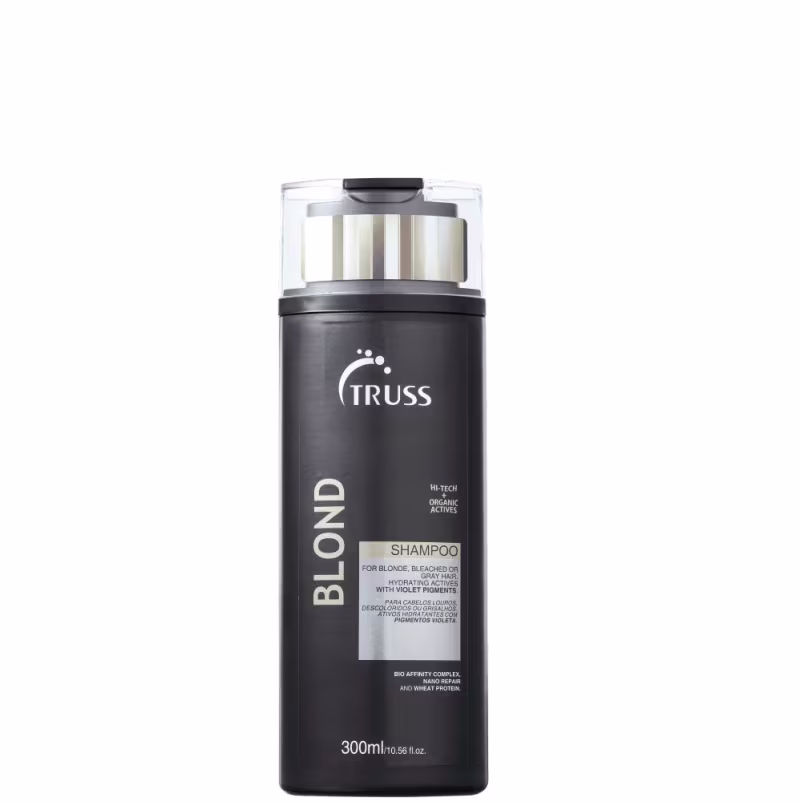 Truss Blond - Shampoo 300ml: recupera a força e a resistência dos fios claros enquanto neutraliza o amarelado.