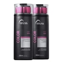 Kit com shampoo e condicionador para cabelos coloridos ou com mechas. TRUSS Color Home Care hidrata e previne do desbotamento da cor.