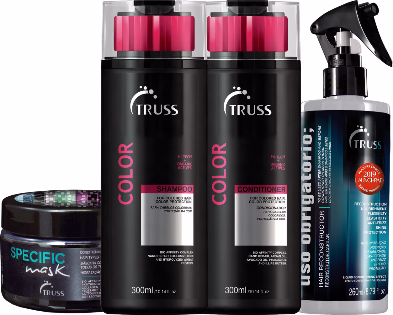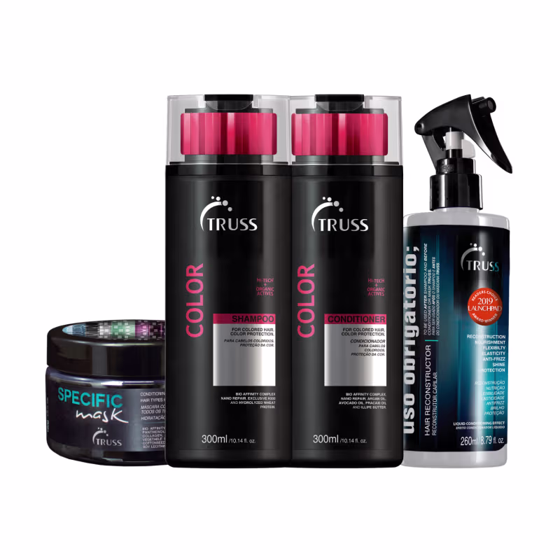 Kit de tratamento para cabelos coloridos ou com mechas. Kit TRUSS Color Specific Obrigatório hidrata, recupera danos e previne do desbotamento da cor.