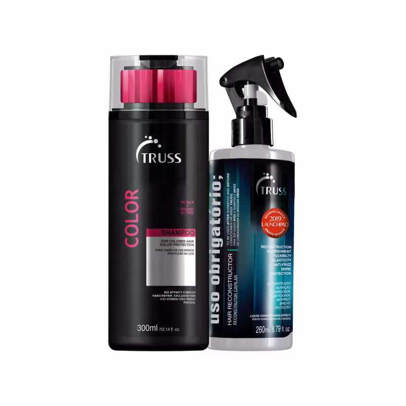 O Kit Truss Color Antifrizz Cabelos Coloridos oferece todos os cuidados essenciais para cabelos coloridos. Recupera e repara os danos causados pela coloração enquanto protege a cor, evita o desbotamento e confere brilho.