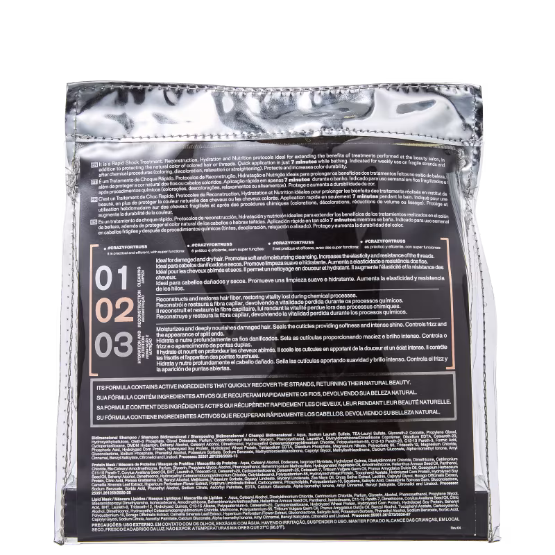 O Kit Truss Crazy For Truss Trio Treatment promove um intenso tratamento de hidratação, nutrição e reconstrução. Seus ativos potentes auxiliam a prolongar a durabilidade da coloração, além de combater o frizz e intensificar os benefícios adquiridos nos salões de beleza.