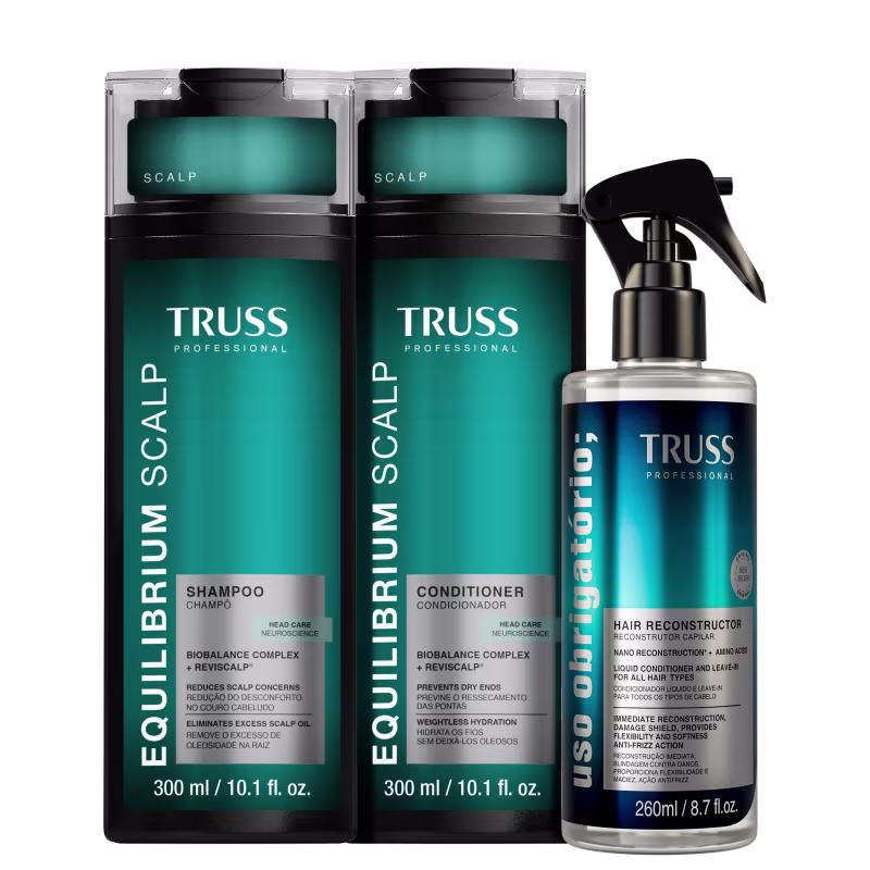 Kit TRUSS Equilibrium Scalp + Uso Obrigatório: controla oleosidade, hidrata e reconstrói para saúde capilar. Melhores Kits TRUSS na BLZ Ver mais ❯