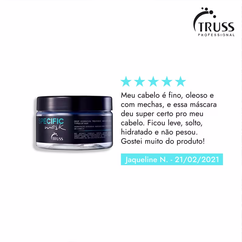 TRUSS Specific - Máscara Capilar 180g: repara os fios de forma intensa enquanto repõe a hidratação.