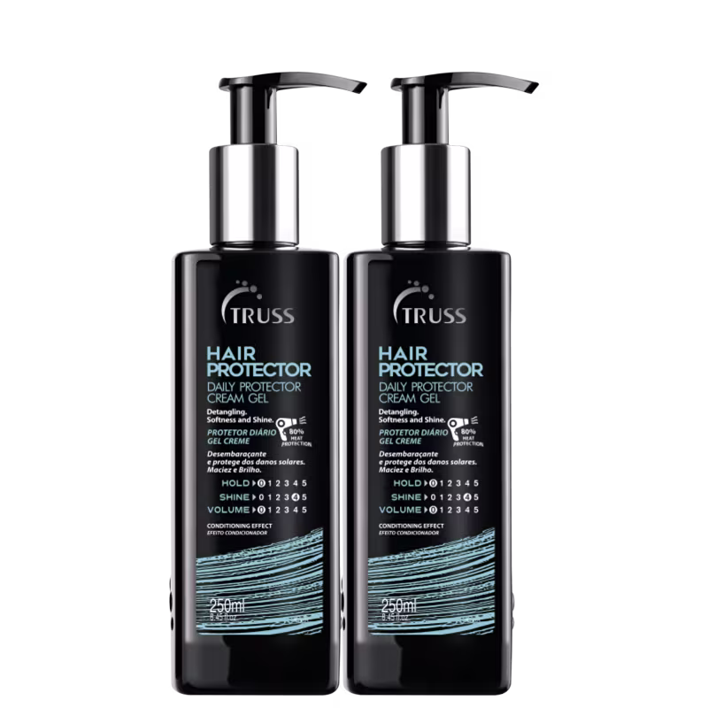 Kit com 2 leave-ins para cabelos equilibrados. Truss Hair Protector Leave-In desembaraça os fios e protege dos raios UV e calor do secador, além dos danos mecânicos causados pela escova.