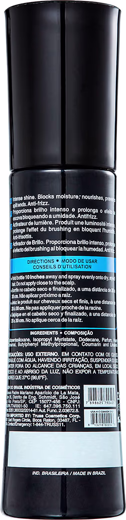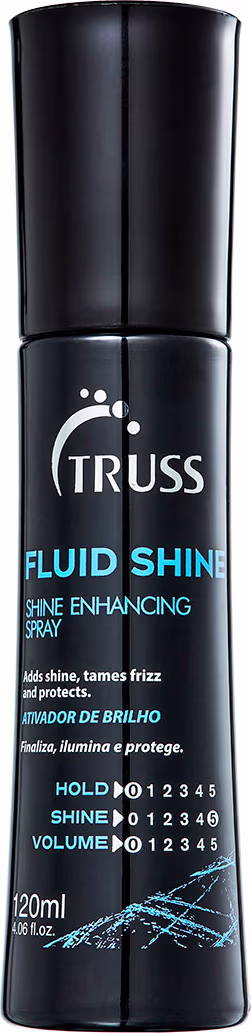 Kit com shampoo e spray de brilho para cabelos danificados, ressecados e opacos. Truss Infusion Fluid Shine Enhancing garante fios iluminados e fortes outra vez!